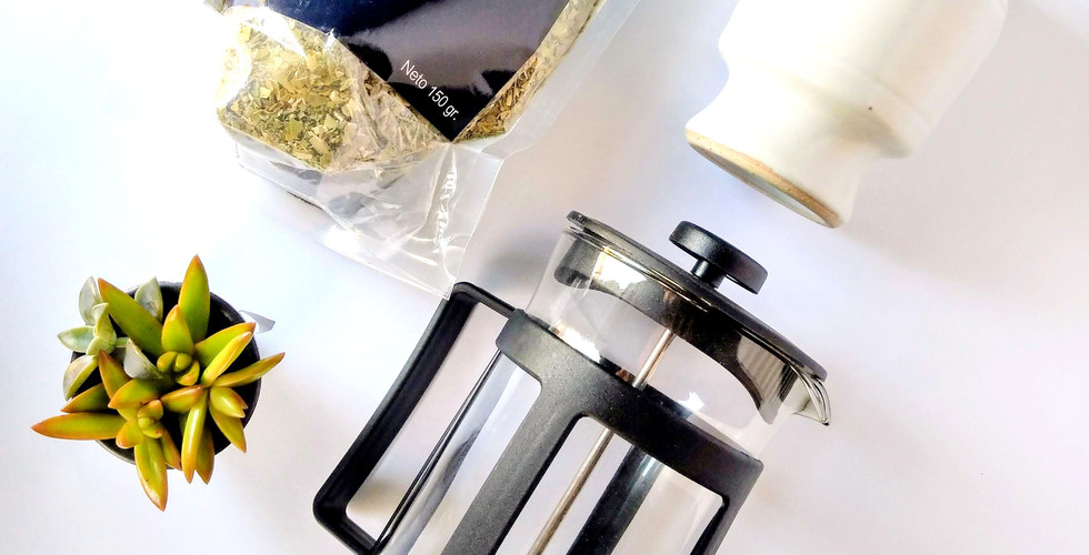 El primer método es con la Prensa Francesa, solo necesitas una prensa, calientas el agua antes del hervor, si tu prensa es para dos tazas de agua solo necesitas agregar dos cucharas de yerba mate es decir una cucharada por taza, esperas una tres minutos para que se haga la infusión y bajas el filtro para que solo quede arriba la infusión de yerba mate, si gustas le puedes agregar menta o cedrón para darle un toque diferente.